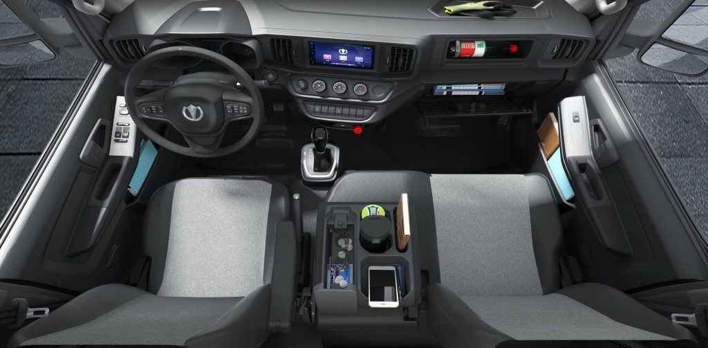 Diseñado para la comodidad, el volante ergonómico y los asientos ajustables minimizan la fatiga del conductor, mejorando la productividad durante largas horas en la carretera.